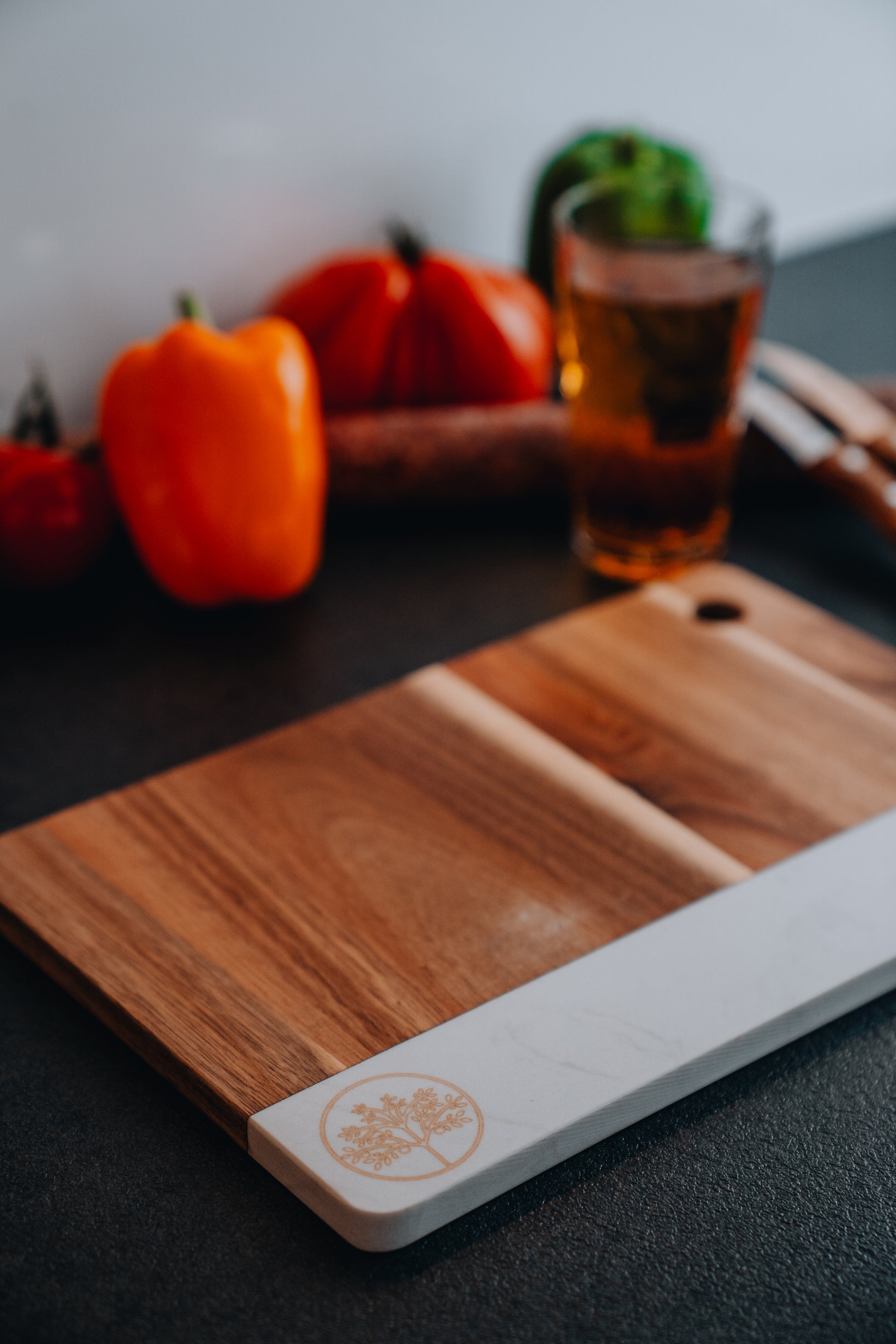 Jedes Brettchen ist ein Unikat, denn Holz und Marmor sind Naturprodukte. Damit wird jedes Stück zu etwas Besonderem – so individuell wie dein Kochmoment.