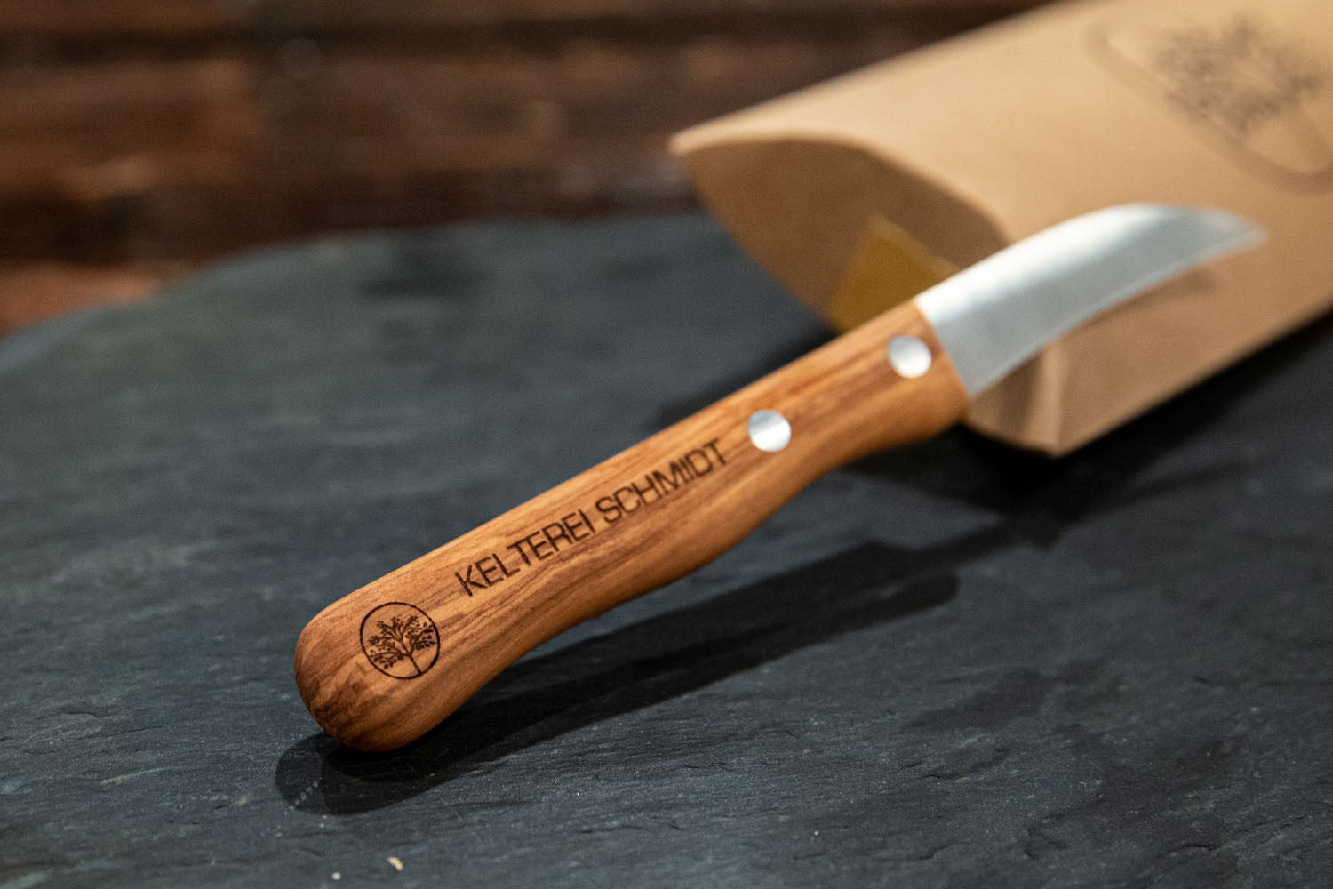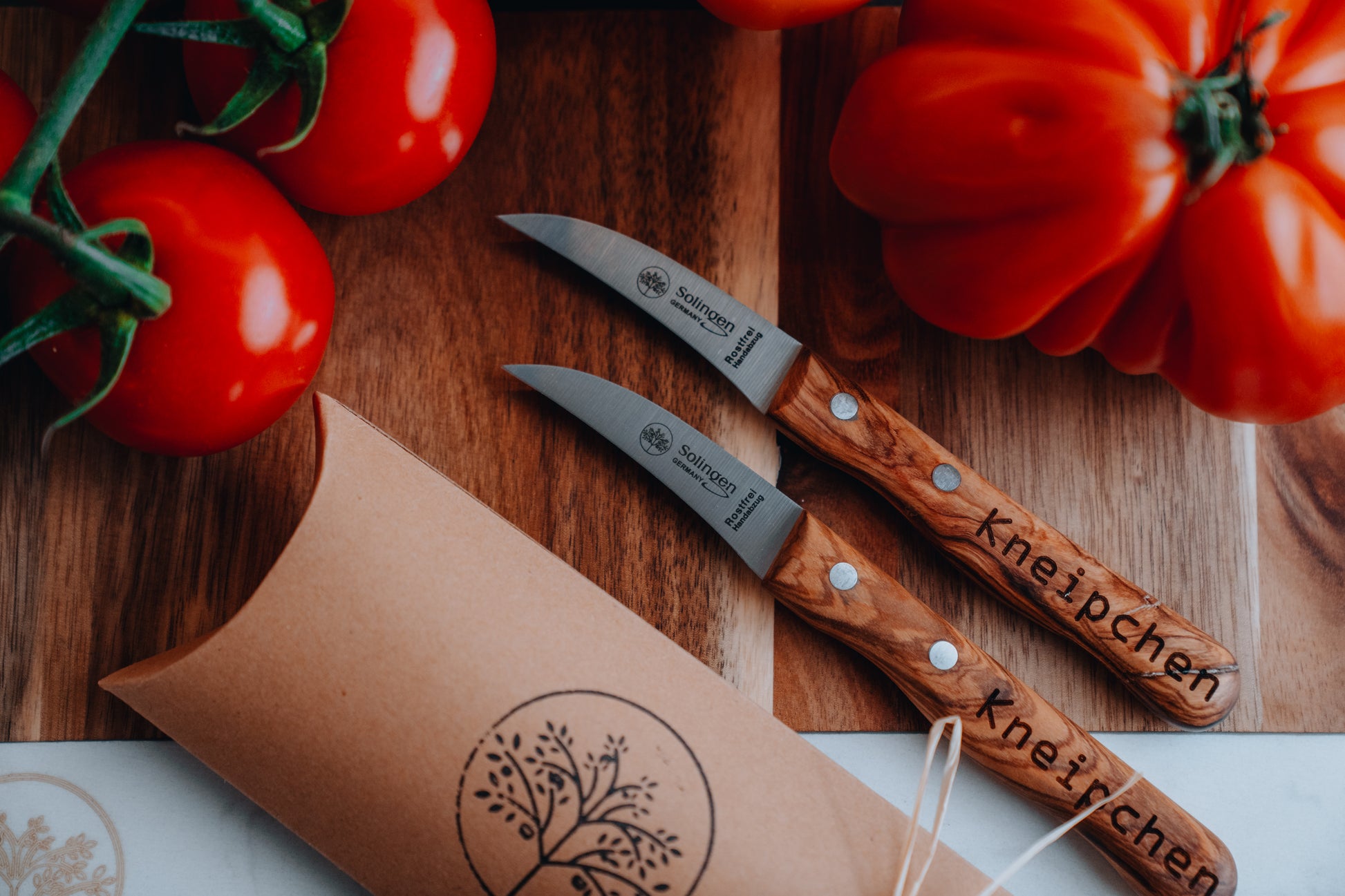 Das Original bleibt natürlich das gleiche: Eine rasiermesserscharfe Klinge aus Solinger Molybdänstahl und ein edler Olivenholzgriff, der perfekt in der Hand liegt. Doch das gewisse Extra entscheidest du – deine Gravur macht jedes Stück zu einem echten Unikat mit Wiedererkennungswert.